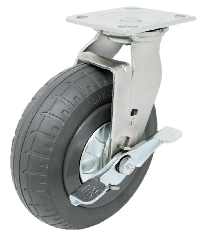 Las ruedas neumáticas, las rellenas de espuma y las de caucho con amortiguación tipo globo, están disponibles en diversas series de ruedas giratorias con acabados como latón o zinc para adaptarse a su estilo.